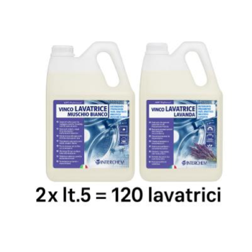 n.° 2 taniche da lt.5 Vinco Lavatrice (Muschio Bianco + Lavanda) detergente per oltre 100 lavatrici.