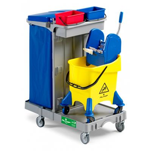 Ideale per ambienti che richiedono lo spolvero, la raccolta rifiuti e il lavaggio dei pavimenti e delle superfici tutto in un carrello.