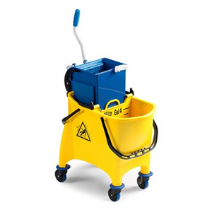 Carrello pulizie monovasca utilizzato per il lavaggio professionale dei pavimenti di medio-grandi ambienti.