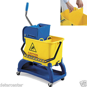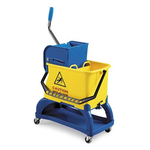 Carrello monovasca utilizzato per il lavaggio professionale dei pavimenti di piccoli ambienti.