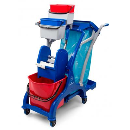 Carrello utilizzato per la raccolta rifiuti e il lavaggio pavimenti di ambienti medio/grandi