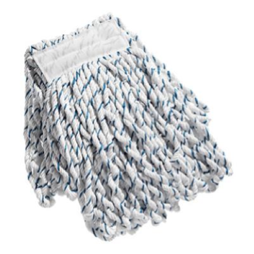 Mop in microfibra gr.350 a filo continuo bianco e blu privo di lattice, indicato per il lavaggio di tutti i tipi di pavimenti, in ambienti medio-grandi.