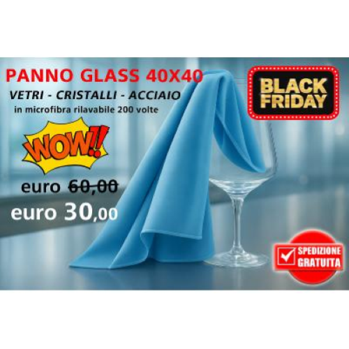 Panno Glass in microfibra cm.40x40 speciale per bicchieri, cristalli, vetri, acciaio e tutte le superfici lucide..