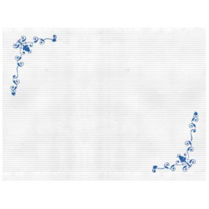Tovaglietta carta 30x40 con stampa fantasia Fiori blu, sottopiatto monouso ideale per bar, hotel, pizzerie e ristoranti.