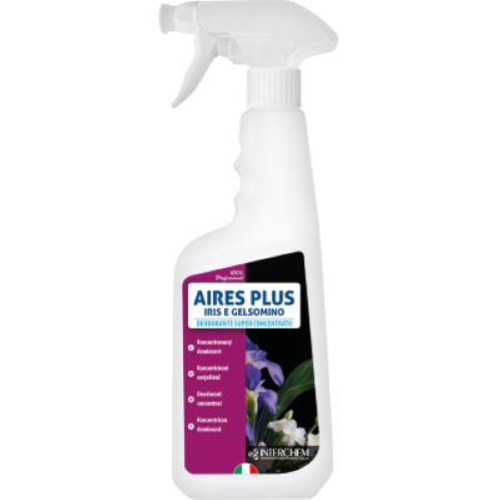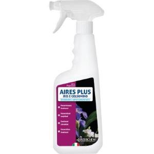 Aires Plus Iris e Gelsomino deodorante liquido Super Concentrato per ambienti e tessuti (moquette e tappeti), profumo intenso e duraturo, ideale per hotel, case di cura, centri privati.