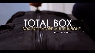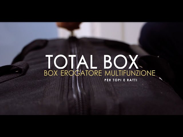 Total Box è un erogatore di esca rodenticida costruito in robusto materiale plastico inattaccabile dagli agenti atmosferici, e grazie alla sua chiusura di sicurezza e al suo sistema di fissaggio mediante staffa, costituisce un ottimo dispositivo atto a creare stazioni di alimentazione particolarmente sicure e protette dagli urti e da manomissioni.