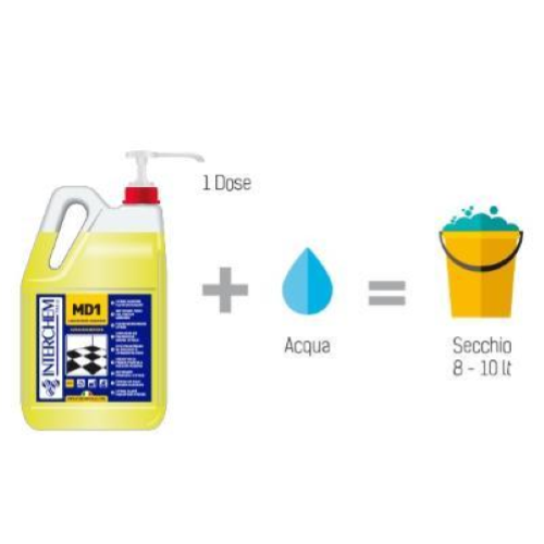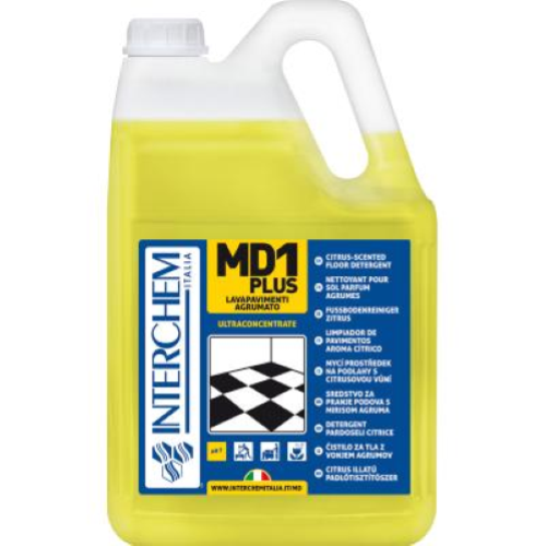 Interchem MD1 Plus è un detergente pavimenti superconcentrato, manutentore per superfici delicati ed incerati, profumato agli agrumi.