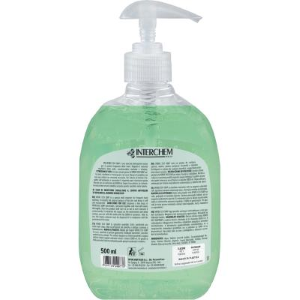 Interchem Verde Eco Soap è un sapone ecologico neutro e idratante, ideale per lavaggi frequenti delle mani, flacone con pompetta dispenser, certificato Ecolabel.