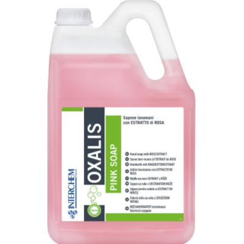 Interchem Oxalis Pink Soap è un sapone lava mani alla glicerina con estratti di rosa in tanica da lt.5 ricarica dispenser. Detergente liquido neutro profumato per la pulizia delle mani.