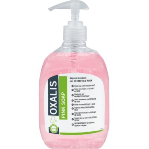 Interchem Oxalis Pink Soap è un sapone lava mani alla glicerina con estratti di rosa in flacone da ml.500 e pompetta erogatrice. Detergente liquido neutro profumato per la pulizia delle mani.