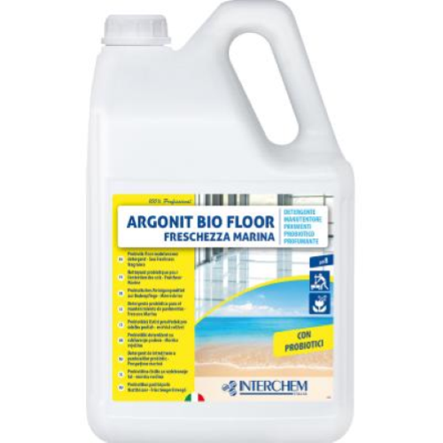Argonit Bio Floor Freschezza Marina è un detergente probiotico profumante a lunga persistenza per la manutenzione di pavimenti e superfici dure e utilizzo con carrello/mop, frangia o lavasciuga.