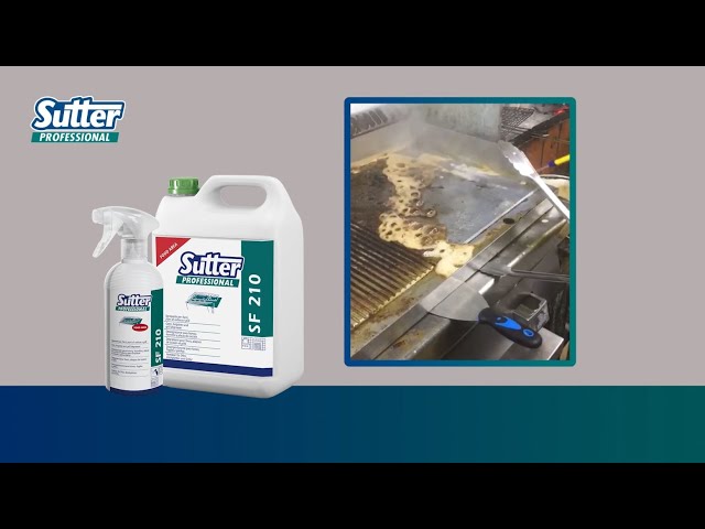 Sutter S.F. 210 è un detergente e sgrassatore concentrato per forni, cappe, grill, fornelli e piastre di cottura di mense e cucine.