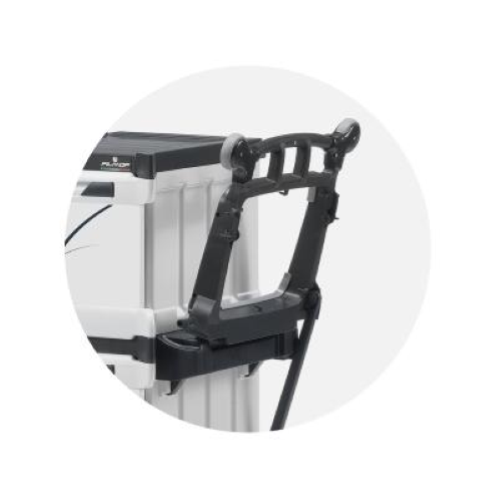 Pratica ed ergonomica maniglia di spinta con incavo e laccio in gomma che consento il riordino degli attrezzi a fine utilizzo.