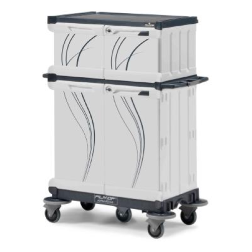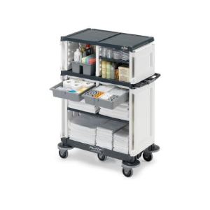 Una vasta gamma di elementi complementari garantisce un carrello pienamente accessoriato, ideale per ogni esigenza di pulizia: non solo ripristino della biancheria pulita, ma anche pulizia della camera e del bagno, raccolta dei rifiuti e servizio mini bar.