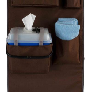 Schienale laterale in tela plastificata rinforzata marrone con porta guanti, dispenser, flaconi e secchio 4 lt1 pz.