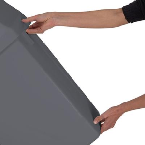 Coperchio basculante asimmetrico con apertura anti-urto e blocco per facilitare le operazioni.