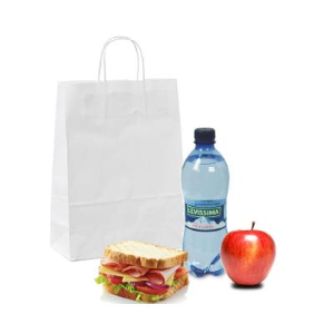 Shopper carta per pranzo, borsa Pasto Lunch ideale per servizio take away di alberghi e hotel. Misure in cm.: 22x10 altezza 29.