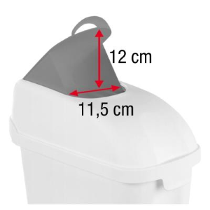 Con apertura a pedale e coperchio "a bocca di lupo" per inibire alla vista il contenuto e prevenire l'uscita di odori sgradevoli