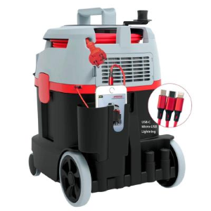 Aspirapolvere Spiritus ERA TEC con porta USB e potenza da 700 W accessoriata, tubo da 2,5 metri, cavo da 12 metri, serbatoio da 13 litri e filtro HEPA.