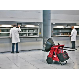 Generatori mobili d’aria calda a raggi infrarossi FIRE 45 – potenza elevata per riscaldamento industriale.