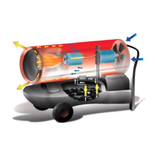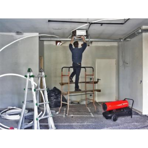 La sua struttura carrellata, maniglia di trasporto e progettazione compatta lo rendono facile da spostare anche in ambienti operativi complessi. È ideale per essiccazioni rapide, riscaldamento temporaneo, emergenze e ambienti con necessità di grande volume d’aria calda distribuita.