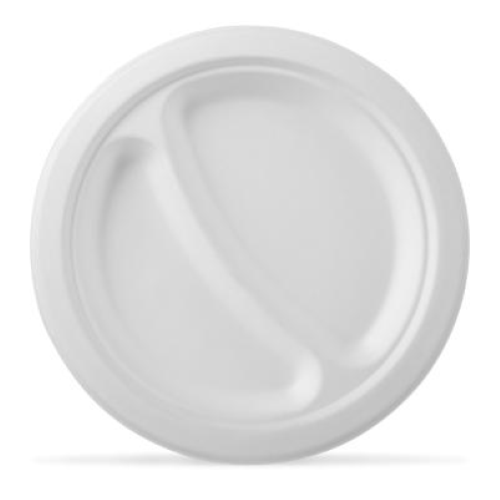 Piatto piano 2 scomparti monouso 22,5 cm Bio compostabile pezzi 10x50