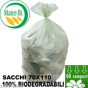 Sacchi immondizia per umido compostabile e biodegradabile 70x110 cm per contenitori spazzatura e rifiuti. Sacchetto in Mater Bi.